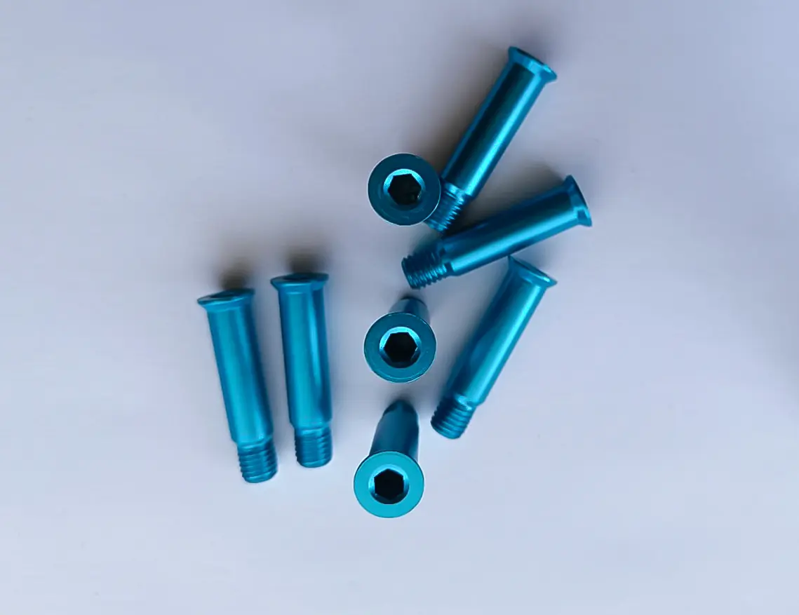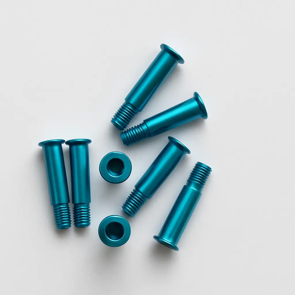 Pernos línea. Con un largo de 36 mm y un diámetro de 8 mm, estos Pernos ofrecen una excelente sujeción de las ruedas, asegurando un deslizamiento suave y seguro. Están fabricados en aluminio anodizado, lo que les proporciona gran resistencia a la oxidación y un peso ultraligero, ideal para mantener el rendimiento sin comprometer la durabilidad. Su diseño incluye rosca en un extremo y cabeza hexagonal para fácil instalación con llave Allen. Disponibles en una amplia gama de colores para personalizar tus patines con estilo.